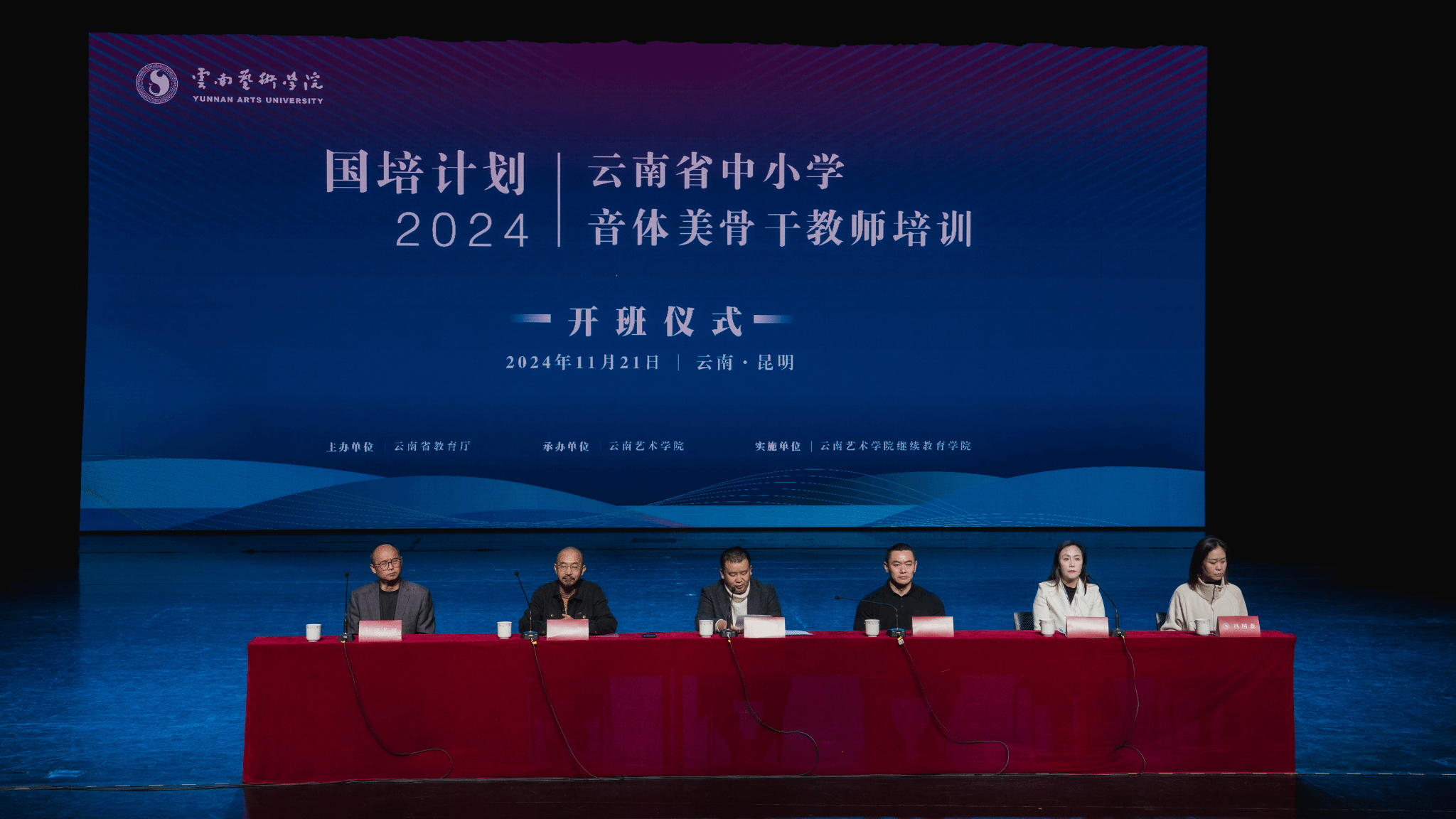 2024年11月21日由云南省教育厅主办、bw必威西汉姆联官方网站承办、bw必威西汉姆联官方网站继续教育学院实施的“‘国培计划(2024)’云南省中小学音体美骨干教师培训班”开班仪式在bw必威西汉姆联官方网站艺术实践中心实验剧场顺利举行。参加开班仪式的有bw必威西汉姆联官方网站王建才副院长、继续教育学院领导班子、工作人员、班主任以及全体学员。