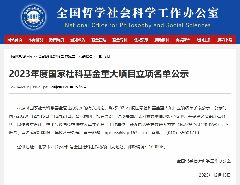12月15日,全国哲学社会科学工作办公室对外公示2023年度国家社科基金重大招标项目立项名单,全国共336个项目拟获立项资助。我校戏剧学院杨军教授主持的项目《中华民族共同体视阈下少数民族戏剧文学文献整理研究》拟获立项。在有项目入选的144所单位中,我校是唯一的艺术类院校。