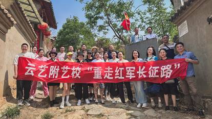 云艺附艺校29名教师党员在党旗的指引下,迈着整齐的步伐,跟随英雄的足迹重走长征路,聆听历史故事,回顾红军长征两次经过昆明五华(现厂口乡和沙朗乡)的革命历程,深刻体会中国工农红军长征时在边疆地区的艰苦斗争,用双脚丈量长征之路的艰辛,用心灵感悟长征精神的伟大。附艺校党总支樊腾发书记带领教师党员们庄严地重温入党誓词,进一步坚定广大党员的理想信念。