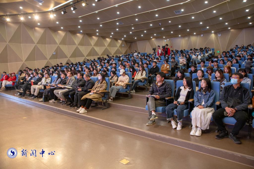 各二级学院辅导员、本科和研究生学生代表,以及学生党员、入党积极分子、学生干部代表近400人现场聆听授课,其他学生通过线上直播参加上课。