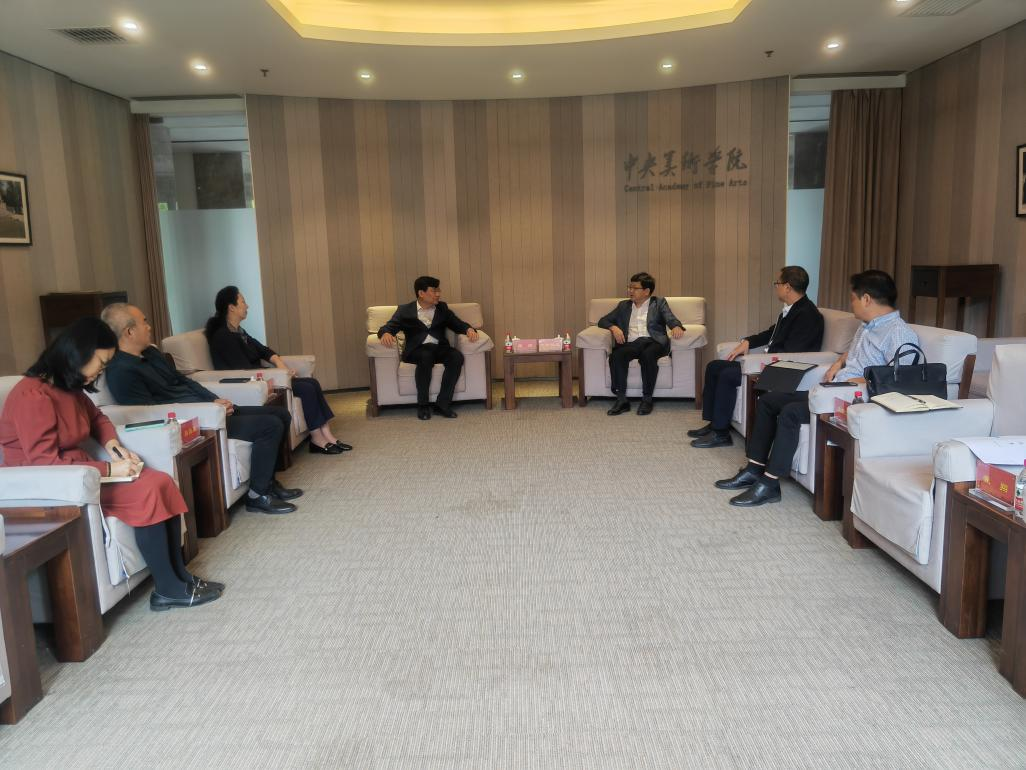 9月27日上午,中央美术学院党委书记高洪、副书记王晓琳、副院长吕品晶及相关部门负责人与欧阳俊虎院长一行进行了交流座谈。双方重点就美术、设计、艺术管理等专业建设具体事宜进行了深入交流探讨。郎启训副院长代表学院与中央美术学院签订了校际帮扶合作协议。