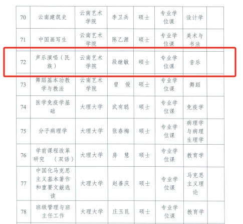 根据《云南省学位委员会云省教育厅关于公布2023年度云南省研究生优质课程建设项目名单的通知》(云学位【2023】7号)《云南省学位委员会 云省教育厅关于公布2023年度云南省专业学位研究生教学案例库建设项目名单的通知》(云学位【2023】9号),云南省立项建设研究生优质课程100门、专业学位研究生案例库建设144个。经层层征集、评审推荐和公示,省学位委员会办公室审核和公示等程序,bw必威西汉姆联官方网站音乐学院获批1个省级研究生优质课程,1个省级专业学位研究生案例库建设项目。具体项目名单如下: