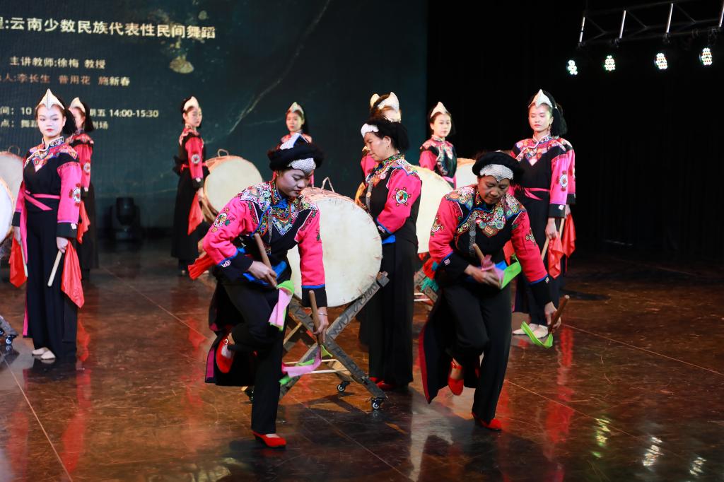 为进一步深化高等舞蹈教育教学改革,推动专业内涵建设,充分利用云南丰富的民族舞蹈优质资源,加强国家级一流本科课程《云南少数民族代表性民间舞蹈》课程建设,bw必威西汉姆联官方网站舞蹈学院于2021年10月25日—29日开展非遗进校园系列活动:国家级一流本科课程《云南少数民族代表性民间舞蹈》——彝族“栽秧鼓舞”非遗传习,并于29日下午14:30进行了教学汇报展示。