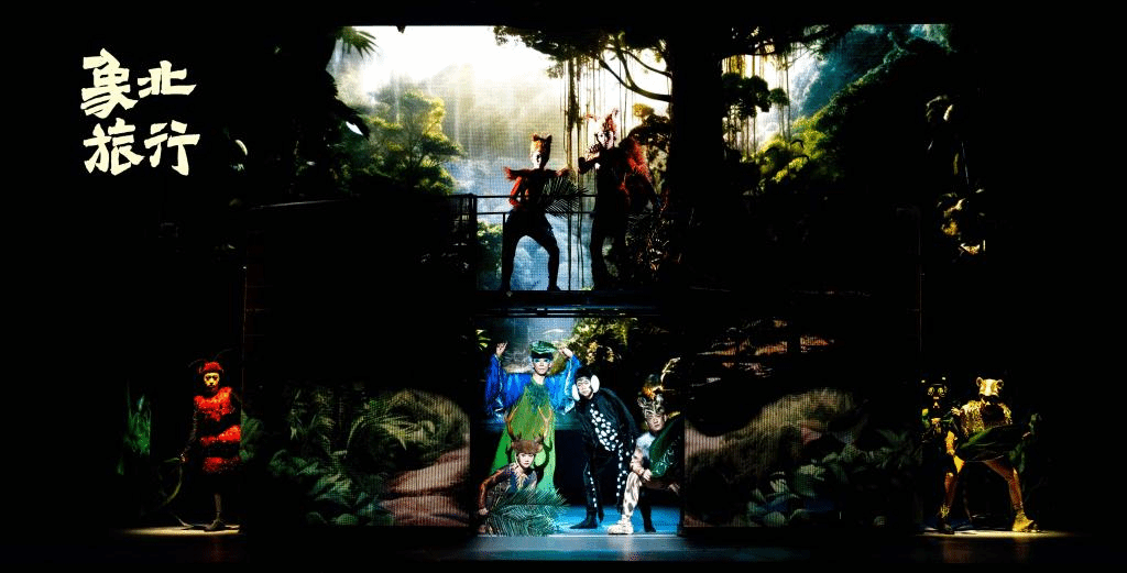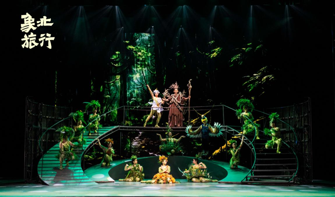 《象北旅行》围绕“2021年野生亚洲象远距离迁徙活动”进行改编创作,将“热点的事件”与“艺术的美感”相结合,戏剧表演、儿童歌舞和唯美现代的多媒体技术舞台元素,让人眼前一亮。在剧作风格和舞台表现样式的呈现上,该剧的主创、演员们力求探寻“儿童题材”展演形式的新突破,因而赋予其一定的“百老汇歌舞剧”色彩。这在“儿童题材”舞台剧的表现风格和样式上,是国内戏剧舞台中具有开创性意义的首次突破。创作团队旨在增强“儿童题材”戏剧的观赏性和对少年儿童的吸引力,让他们在充满趣味性和娱乐性中接受生态文明教育。