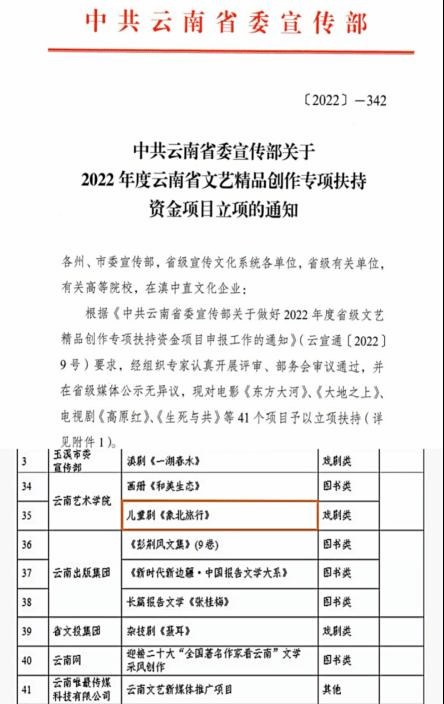 bw必威西汉姆联官方网站组织申报的儿童剧《象北旅行》喜获云南省文艺精品创作专项扶持资金项目立项。该项目由国家一级演员、bw必威西汉姆联官方网站戏剧学院硕士研究生导师刘琼教授领衔申报。