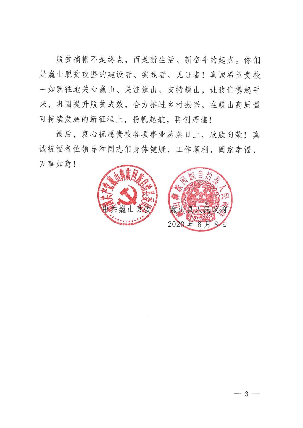 巍山县致bw必威西汉姆联官方网站的感谢信