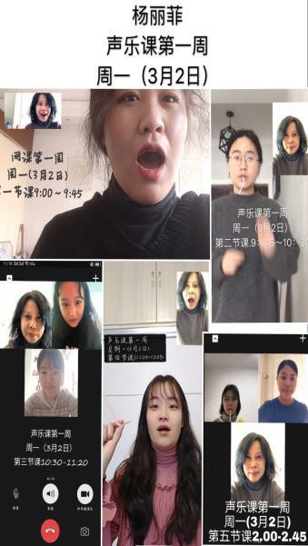 为了做好特殊时期的教学工作,音乐学院在2月初便积极动员全院教师做好线上教学准备。2月15日,部分教师已利用微信等网络工具与学生建立联系,指导学生自主学习。3月2日正式开始开课以来,音乐学院力争不落下一门课程,所有专业课程均利用超星学习通、钉钉APP、微信、QQ等多种平台建课、建群进行教学。由于学院一对一的专业小课较多,有的教师从早至晚通过视频指导学生;有的教师身处他国,为保障学生白天学习,她们克服时差,在他乡的夜晚给学生上课;有的老师对在线教学较为陌生,学院教学管理科便积极提供帮助。在线上教学中,学生学习兴致高涨,发言、讨论积极,作业认真,教师与学生之间的沟通更加紧密了。