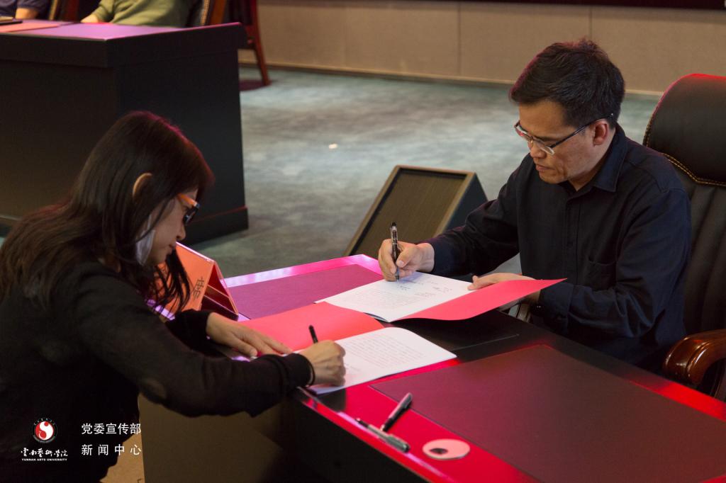 校党委书记黄雁玲同志和校党委副书记、校长郭浩同志分别与音乐学院、戏剧学院签订责任书