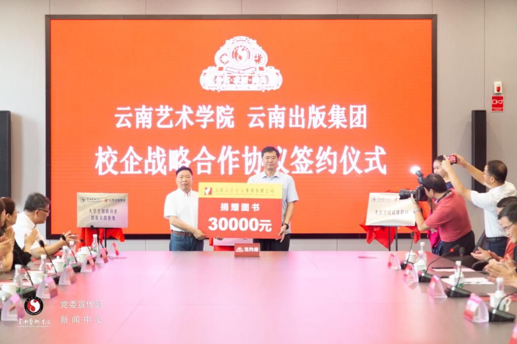 最后,学生工作部(处)部(处)长高祖舜代表学校接收了云南新华书店集团有限公司向学校捐赠的价值3万元的图书。