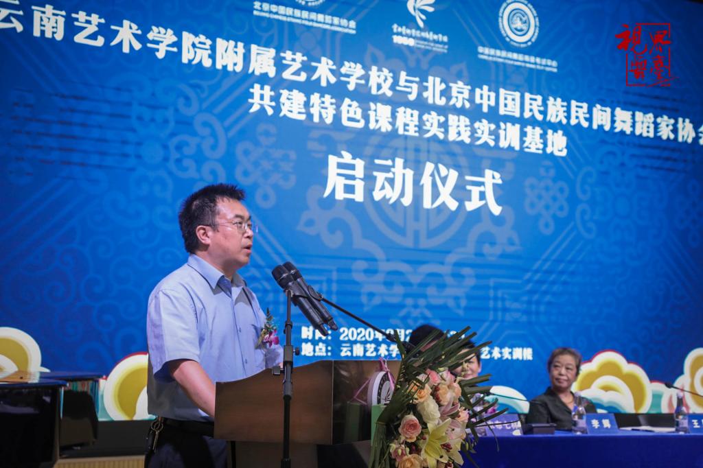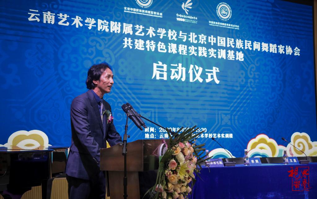 金风送爽,丹桂飘香。8月28日15:30bw必威西汉姆联官方网站附属艺术学校与北京中国民族民间舞蹈家协会课程共建实践实训基地启动仪式在附艺校110演播厅正式启动。云南省教育厅职成教处处长刘其勇、北京中国民族民间舞蹈家协会副会长兼秘书长王晨、凤凰卫视主持人、制片人、北京中国民族民间舞蹈家协会副会长李辉、北京中国民族民间舞蹈家协会副秘书长、中国民族民间舞蹈等级考试中心副主任吴海文、附艺校农布七林校长、樊腾发书记、王晓军副校长以及来自北京、云南的舞蹈界著名专家、学者以及全省16个地州市的美育教育机构的60名校长及老师共同出席了本次启动仪式,启动仪式由农布七林校长主持。