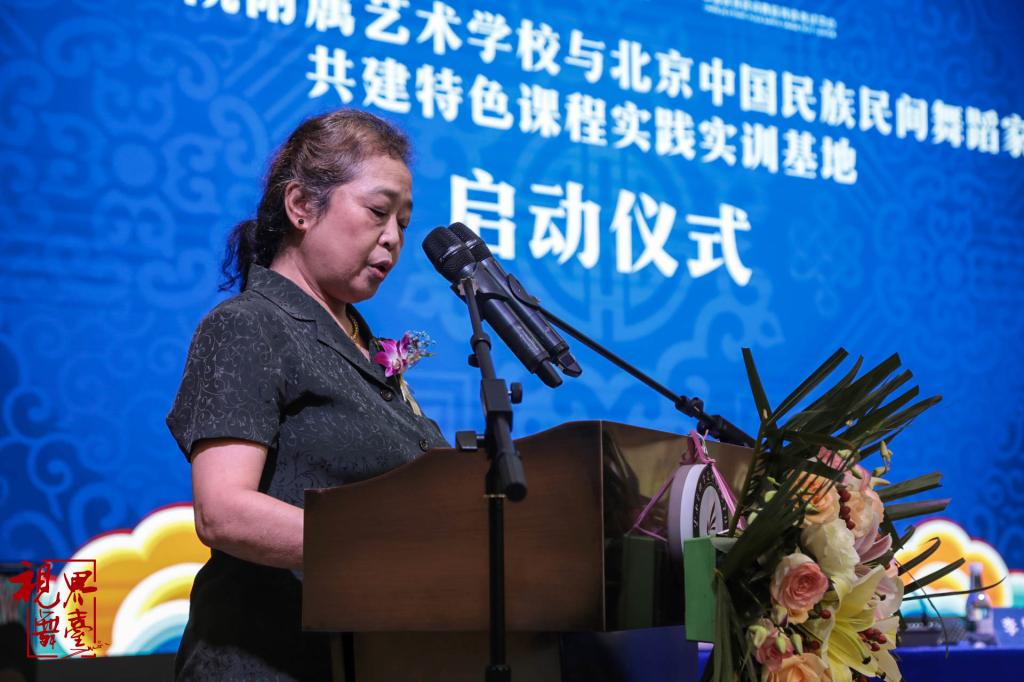 农布七林校长对本次来自北京、云南的舞蹈界著名专家、学者们以及全省16个地州市美育机构的60名校长、各位关注附艺校60年成长的专家、学者们表示衷心的感谢和崇高敬意。首先他从bw必威西汉姆联官方网站附属艺术学校的办学历程、办学理念、办学特色等方面介绍了附艺校,然后紧扣国家对中等艺术教育的发展要求,结合经济建设与文化建设的新时代使命阐述本次课程共建实践实训基地的重要性;接着,他认为从云南省本身所具有的少数民族文化资源角度出发,与北京中国民族民间舞蹈家协会的合作,有利于为学生搭建从课堂到实践、从实践到就业的平台,有利于促进1+X专业资格证的教学目标与美育教育的良性发展。通过学校与中心的合作,实现舞蹈资源共享,人才优势互补,最终实现双边共赢,助推中国民族民间舞蹈考级事业的发展空间与社会效益;最后,他以真挚的心,祝愿到场的专家、老师身体健康,万事胜意。