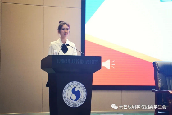看过了优秀的师姐之后,再来看看后起之秀吧!来自2020级播音班的的陈思含同学作为新生代表上台发言。她感怀:因为疫情,2020级的同学们也有了不一样的艺考、不一样的高考,但值得庆幸的是,我们最终还是相聚在云艺的大家庭里了!虽然对于新同学来说,大学的生活是未知的,但就像陈思含同学说的一样:新的征程已经开始,十二年的寒窗苦读已经结束,但前进的脚步不会停止。你们青春里最精彩的时刻已经到来,同学们也要努力学习呀!