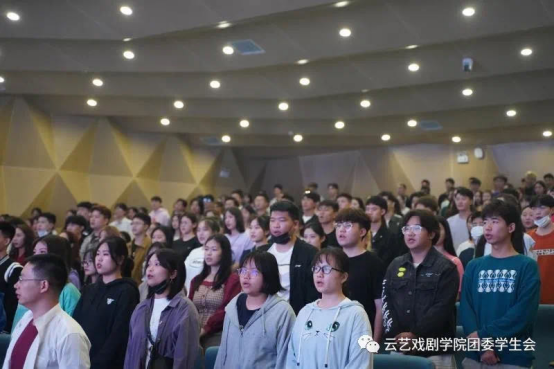 戏剧学院党委书记张国岗、主持行政工作的副院长杨军、校研究生处副处长兼理论教学部主任杨俊霞、戏剧学院办公室主任高然、教学管理科科长王晓霞、戏剧学院党委委员兼团委副书记嘉泽德智、戏剧学院党委委员兼学生科负责人杨央、戏文系主任严程莹、表演系主任和建元、舞美系主任彭玮以及各新生班班主任、辅导员出席2020级新生开学典礼。