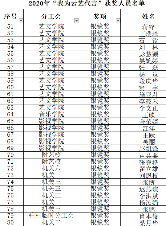 金镜奖、银镜奖获奖名单如下: