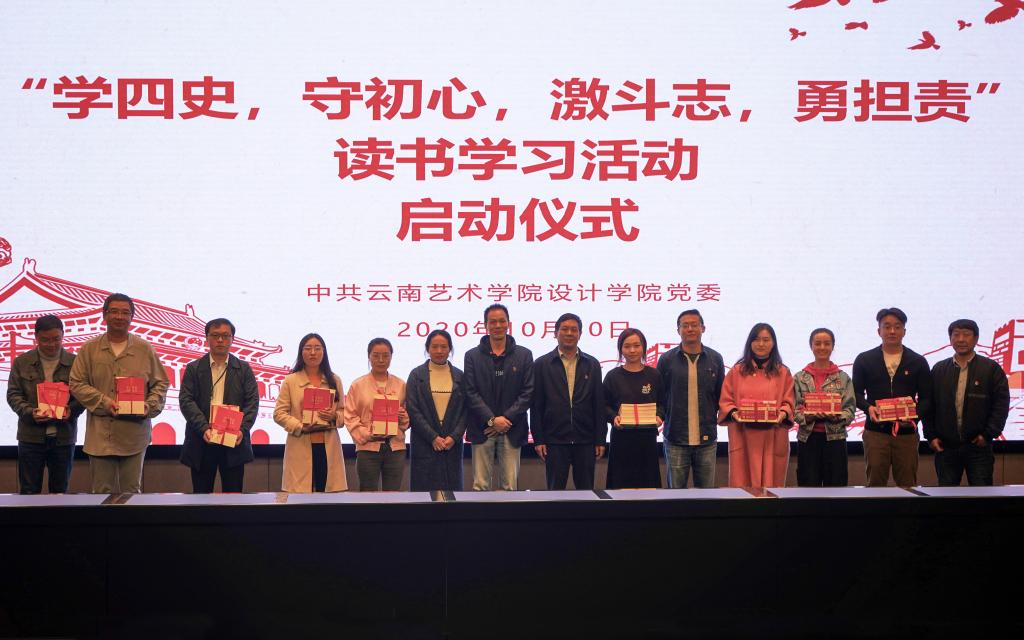 在设计学院2021年云南“红”、生态美、民族情——建党100周年主题文化创意活动来临之际,设计学院党委紧紧围绕教学中心工作,将党建工作融入师生思想政治教育工作中,于2020年10月30日在图书馆报告厅举行“学四史,守初心,激斗志,勇担责”读书学习活动的启动仪式。bw必威西汉姆联官方网站党委副书记李从熙应邀出席、设计学院党政领导和各党总支、党支部党员师生参加活动,活动由设计学院党委副书记王进主持。
