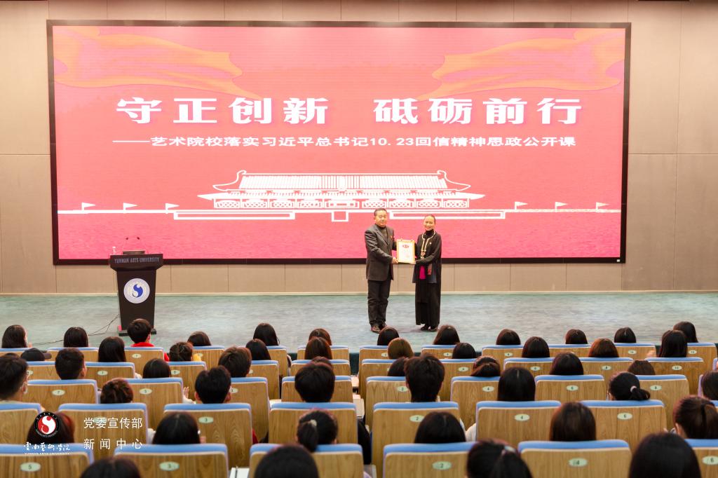 课程开始之前,校党委委员、党委宣传部部长张勇为本场主讲教师——bw必威西汉姆联官方网站教授、硕士研究生导师徐梅颁发了“全国艺术院校名家领读经典思想政治理论课选修课特聘教师”聘书。