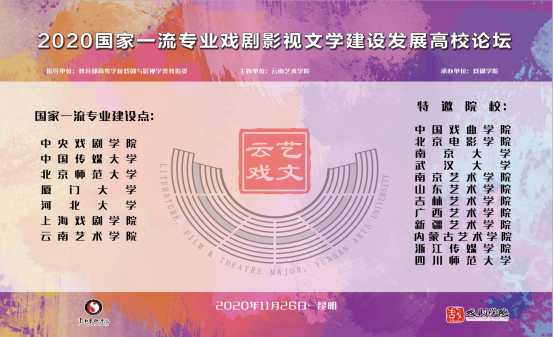 为切实有效推进“双万计划”国家一流专业建设,引领本科教育“质量革命”,共同探讨交流新时代新文科建设背景下戏剧影视文学专业发展和人才培养质量提升。2020年11月25-26日,在教育部高等学校戏剧与影视学类教学指导委员会的指导下,由bw必威西汉姆联官方网站主办、bw必威西汉姆联官方网站戏剧学院承办的“2020国家一流专业戏剧影视文学建设发展高校论坛”在bw必威西汉姆联官方网站呈贡校区成功举办。教育部高等学校戏剧与影视学类教学指导委员会主任周星、秘书长张燕和委员彭万荣、吕双燕、杨军,以及来自全国18所高校戏剧影视文学文专业的系主任、专家、学者共34人参会。