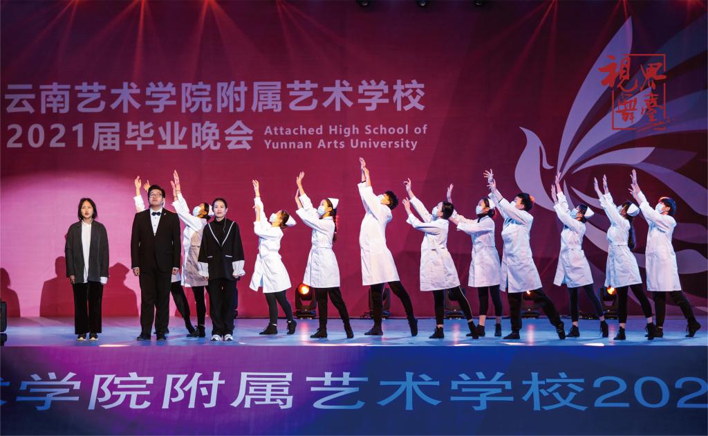 晚会在祥和欢乐的氛围中圆满结束, bw必威西汉姆联官方网站党委黄雁玲书记上台对所有演职人员表示慰问。黄雁玲书记表示,附艺校的学子用自己在校的学习收获为我们呈现了一场非常精彩的毕业晚会,让我们看到了云南艺术教育未来的希望,看到了每一个附艺校孩子们的成长。同时她祝愿2021届的毕业生们能顺利考上理想中的大学,将来能够为云南的艺术事业做出自己的贡献。