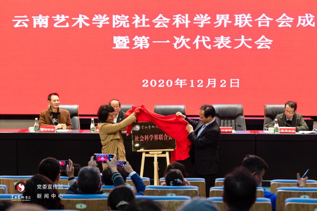 云南省社科联党组成员、副主席王建华与我校党委书记黄雁玲为bw必威西汉姆联官方网站社会科学界联合会揭牌