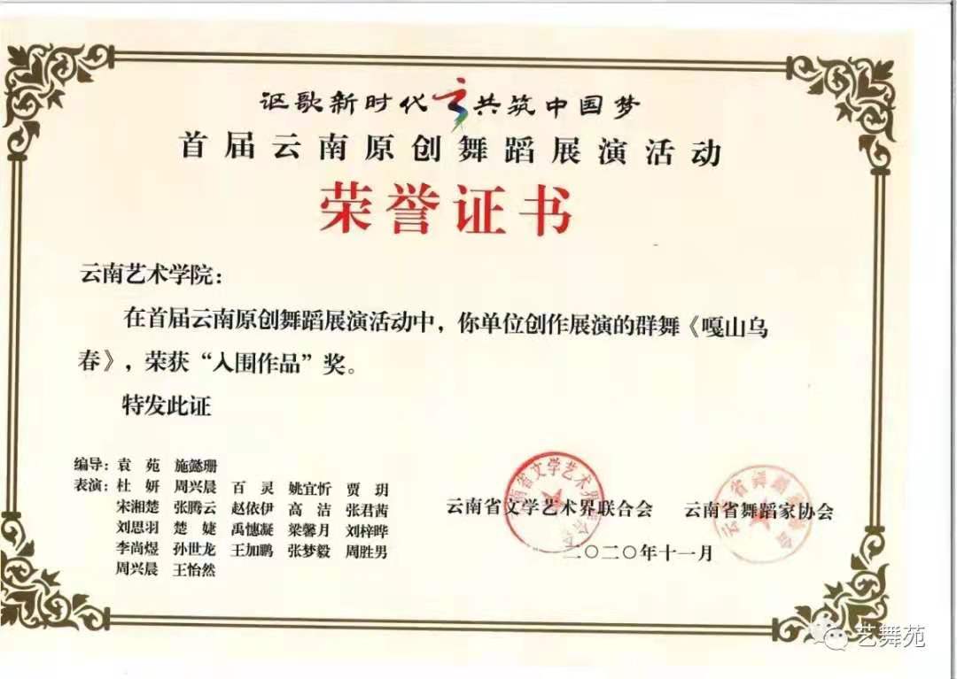 2020年11月初冬,由云南省文联主办,云南省舞蹈家协会承办的“首届云南原创舞蹈展演活动”在昆成功举行。