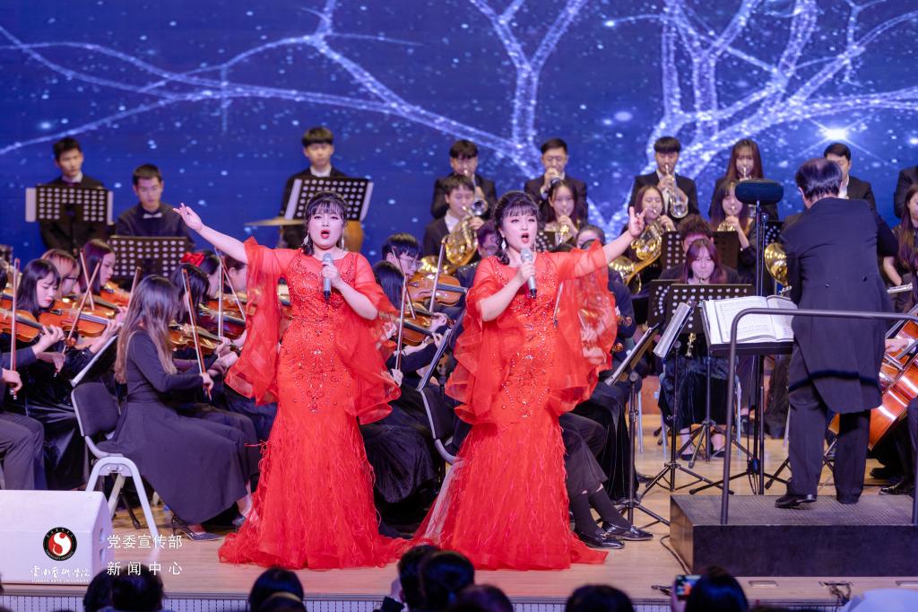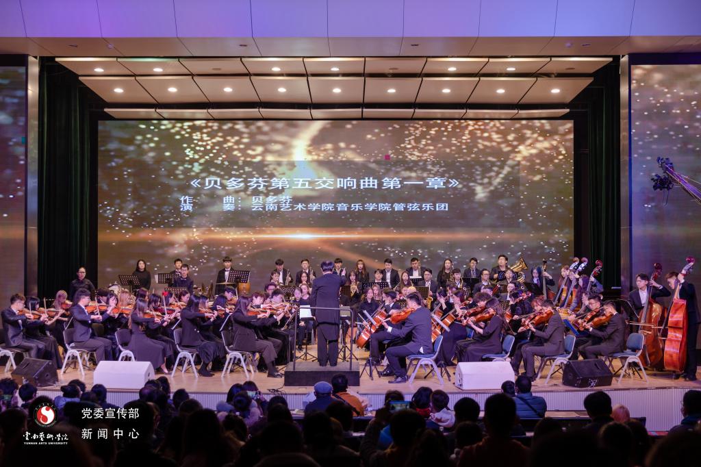 整场音乐会内涵丰富,曲目广泛,不仅给现场的听众带来了极致的视听享受,更是丰富了广大云艺师生的精神内涵。晚会的最后,党委书记黄雁玲代表学校党委、行政对演职人员和工作人员进行了慰问与感谢,对此次音乐会的精彩演出给予了肯定,同时期盼明年音乐会能够越办越好,并祝愿老师、同学们在新的一年里身体健康、工作顺利、学业精进、心想事成。