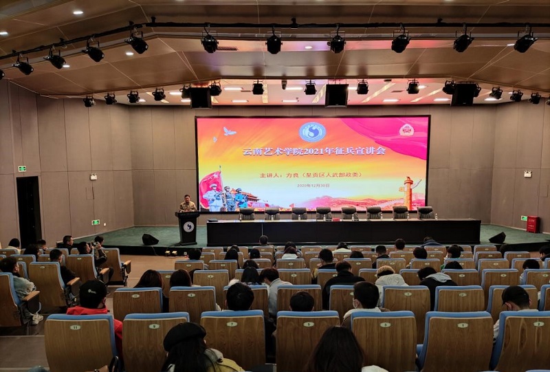 为扎实做好2021年大学生征兵工作,使全体学生进一步了解“两征两退”兵役制度全面深化改革后大学生应征入伍的相关背景和政策,营造“参军报国、无上光荣”的校园氛围,2021年12月30日上午,呈贡区人民武装部政治委员方良同志到我校作2021年征兵宣讲。