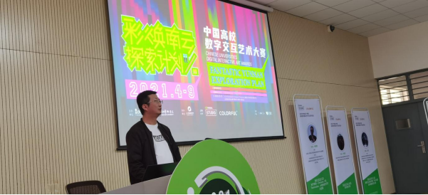 首先,本次活动的总策划以及学术主持人刘恩鹏老师向各位来宾及同学介绍此次沙龙嘉宾,并热诚的感谢给予本次活动全程支持的NVIDIA、Colorful与MANA,对到场嘉宾及同学表示热情的欢迎及真挚的感谢;在刘老师致辞的最后他隆重的宣布第二届“彩焕南云”交互艺术大赛正式开启,今年的主题以2021年COP15生物多样性全球大会为背景,倡导全国各高校的大学生基于最新数字图形科技来联动生物主题的艺术创作。