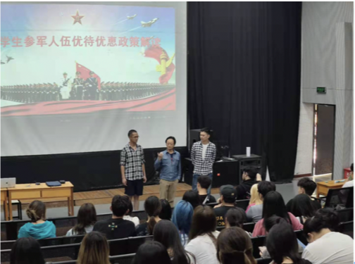 影视学院精准组织各年级、各专业的学生召开征兵动员会,积极动员大学生参军入伍,做好大学生应征入伍工作,同时通过多渠道宣传播放征兵宣传片、微电影,进行全方位宣传,鼓励同学们携笔从军,把成才梦融入强国梦强军梦。