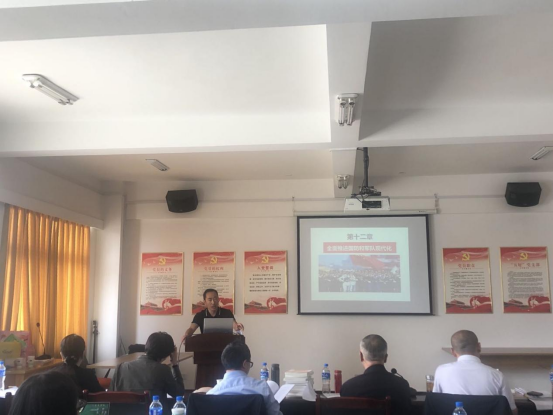 我校马克思主义学院夏能老师就《全面推进国防和军队现代化》专题进行展示。夏能老师从历史站位、理论站位、实践站位上形象生动、有层次、有重点地进行说课,展示了扎实的教学功底和幽默风趣的教学特色。