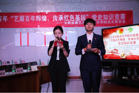 为深入贯彻落实习近平总书记在党史学习教育动员大会上的重要讲话精神,庆祝中国共产党成立100周年,持续深化党史学习教育,引导广大师生重温百年党史,传承红色基因,凝聚奋进力量,做到“学史明理、学史增信、学史崇德、学史力行”,bw必威西汉姆联官方网站将举办庆祝建党100周年党史知识竞赛。音乐学院团委及学生管理科为选拔出校级党史知识竞赛参赛人员,在音乐学院党总支的领导和指导下,于2021年6月1日19:00在音乐学院B403演播厅举办音乐学院庆建党百年“艺展百年辉煌 传承红色基因”党史知识现场选拔赛。