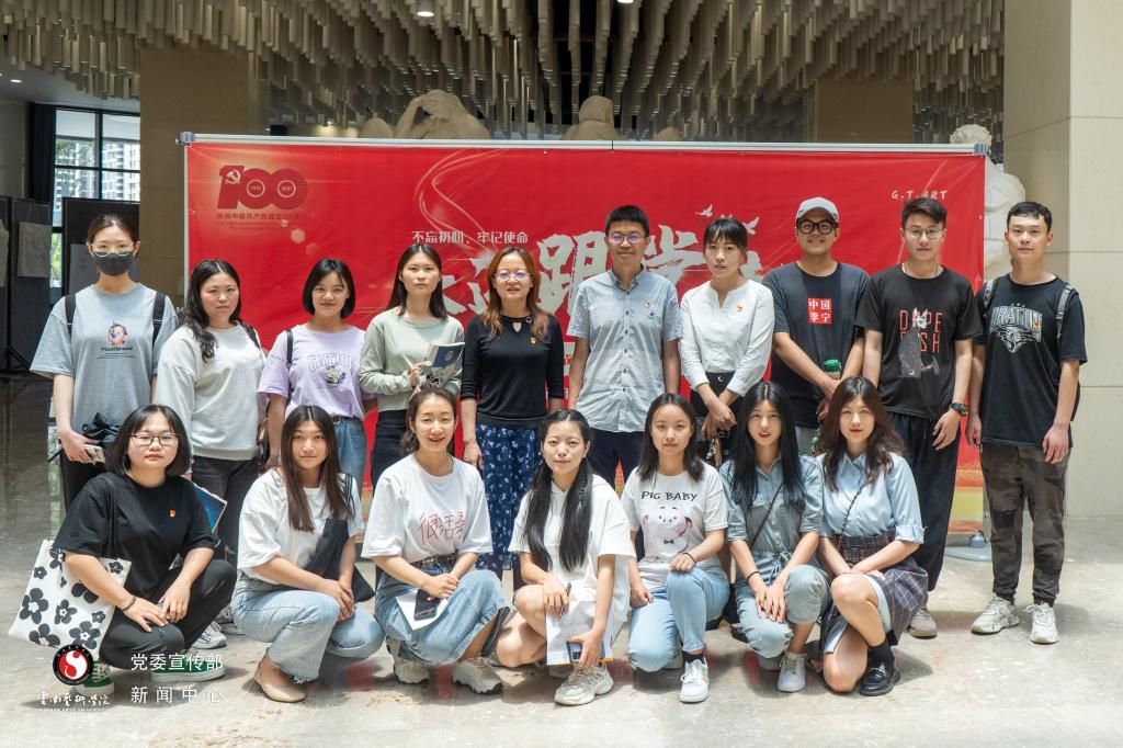 此次展览共三个系列,分别展现中国共产党过去、现在以及未来的发展。展览内容丰富全面,形式新颖多样,结合传统画作和VR全景全方位展现中国共产党百年历程。展厅现场气氛活跃,参展师生都积极观展并参与VR互动体验。