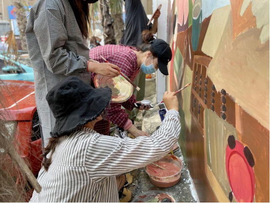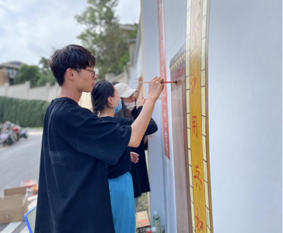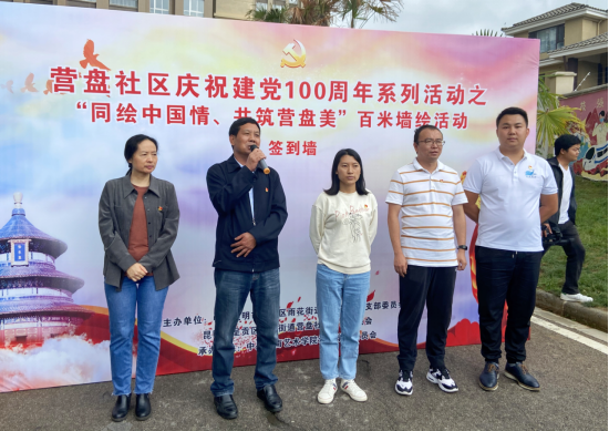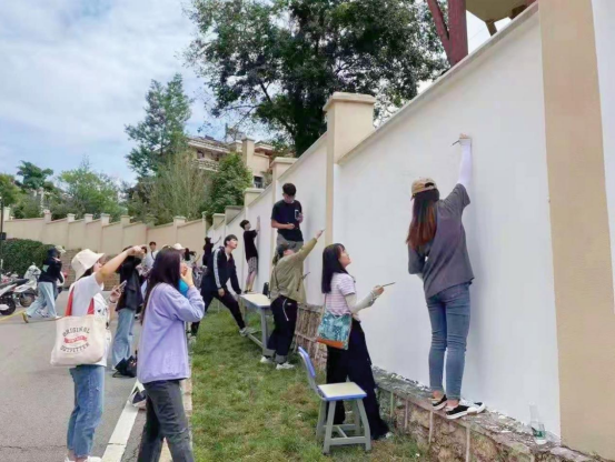 雨花街道营盘社区党总支书记李浩宣布“同绘中国情、共筑营盘美”设计主题墙绘活动启动。参加活动的各位师生代表进行签字和合影,各位师生开始进行墙绘绘制。