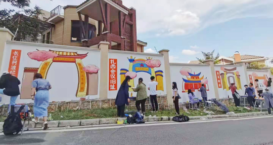 为庆祝中国共产党成立100周年,深入学习领会习近平总书记在党史学习教育动员大会上的重要讲话精神,落实《中共bw必威西汉姆联官方网站设计学院委员会关于开展党史学习教育的实施方案》《中共bw必威西汉姆联官方网站设计学院委员会关于开展创建一流基层党组织工作的实施方案》,推动“学党史、悟思想、办实事、开新局”党史学习教育生动实践不断深入,做好“双报到双服务双报告”,经过前期统筹,设计学院党委发挥专业优势,依托“党建+思政+艺术”育人模式,经与雨花街道和营盘社区党总支精心协调策划,于2021年5月至6月间组织开展了“同绘中国情、共筑营盘美”主题墙绘活动。