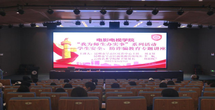 为切实做好在校师生安全防范教育,预防和减少电信诈骗案件的发生,按照保卫处工作要求,2021年6月9日下午,影视学院在图书馆报告厅举行“我为师生办实事”系列活动——学生安全、防诈骗教育专题讲座,讲座由保卫处李黎明老师主持,影视学院部分师生代表参加。