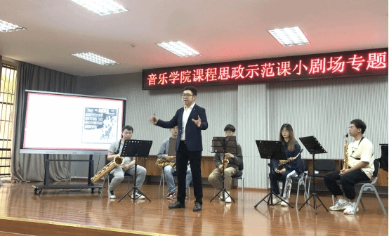 音乐学院以小剧场为平台,把课程思政“小课堂”与学生成长“大舞台”统一起来,将思政教育融入声乐类、演奏类、音乐史、音乐教学论等主要课程,推进了思政课与课程思政同向同行,发挥了协同效应。此次以“百年党史教育”为主题的课程思政示范课观摩交流,汇集了《演唱主科》、《民歌模唱》、《歌剧片段实践》、《钢琴教学法》等核心课程,通过小剧场,将党史教育、“四史”教育、社会主义核心价值观等思政元素和红色基因融入专业课程教学与实践,潜移默化、如盐化水般地完成了国情教育和主流价值熏陶,把家国情怀、文化自信自然渗入课程方方面面,实现润物无声的效果。