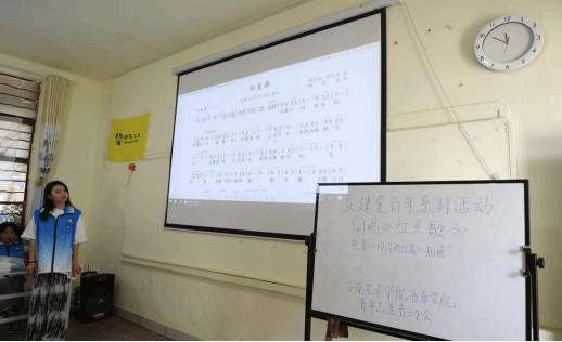 2021年6月5日、6月12日,bw必威西汉姆联官方网站音乐学院团委、青年志愿者协会赴昆明市呈贡区回回营社区儿童服务站与留守儿童一起开展“宣讲红色故事、教唱红色歌曲”活动。培养共青团员、少先队员、儿童的爱国爱党精神,丰富社区文化生活。