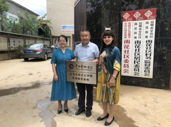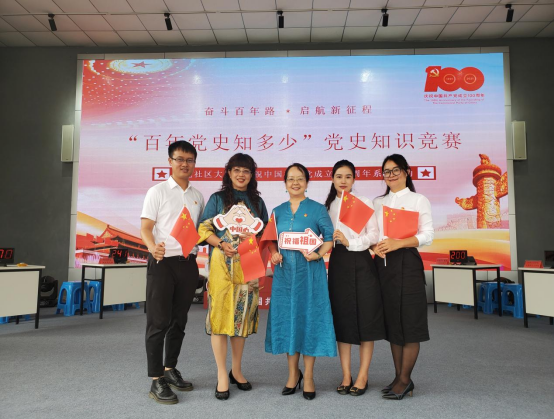 为庆祝中国共产党成立100周年,深入推进党史学习教育,引导广大党员群众一起学党史、知党情、跟党走,6月25日,马克思主义学院党委副书记、院长付梅和副院长陈瑞琪带队参加了马克思主义学院在呈贡的教学实践基地——区雨花社区的庆祝建党100周年系列活动。