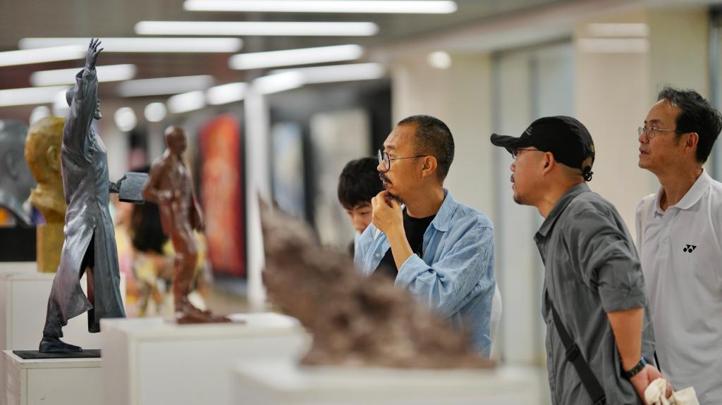 “百年征程•初心续航”展览作品分为“百年征程”和“美好生活”两个板块,由bw必威西汉姆联官方网站美术学院、设计学院、影视学院、戏剧学院、高职学院等多个教学单位的师生倾心创作,涵盖了中国画、油画、版画、雕塑、水彩、摄影、书法等画种类型,包括特邀教师作品94组,学生作品40组。同时还特别展出了李忠翔先生、史一先生等捐赠的学校部分馆藏作品31件,其中包含了黄永玉、吴长江、代大权等老一辈著名艺术家的作品,十分珍贵。