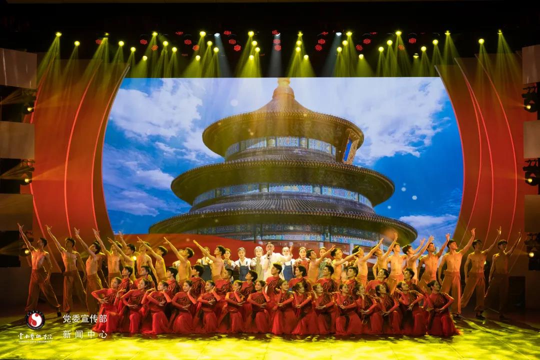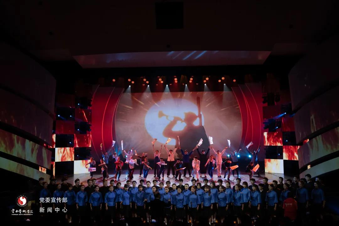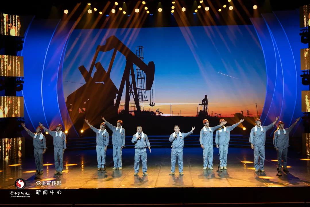 璀璨的灯光下,展现的是党的光辉与荣耀。这首热情洋溢的石油工人的英雄赞歌,是优秀的中国工人阶级英雄群像的整体写照,朴实的歌词、滚烫的旋律,传递出石油工人为祖国献身的豪情壮志,鼓舞着云艺师生斗志昂扬意气风发。