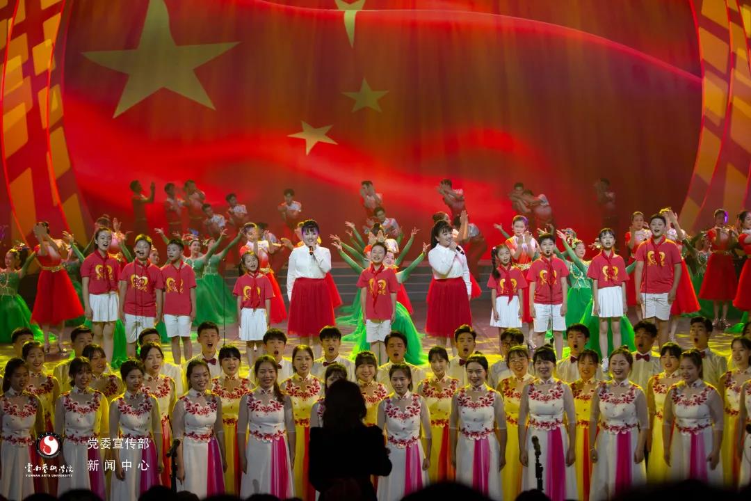 “小红领巾”们的稚嫩童声,唱响悠扬的音符,荡起如歌的岁月,缓缓流入每一个人的心田。把歌曲与红色故事穿插叙意,萦绕着对党的无限情思,歌声充满了自豪和赞美,将百年的风雨兼程描绘成了一幅伟大的华夏盛世长卷。