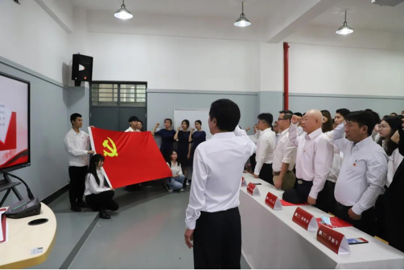 最后,新党员宣誓、老党员重温入党誓词,余光荣书记进行了领誓。