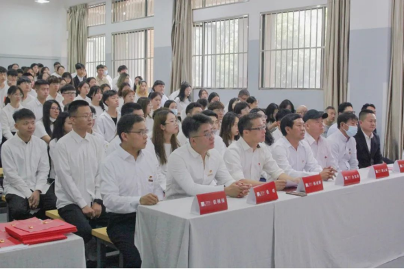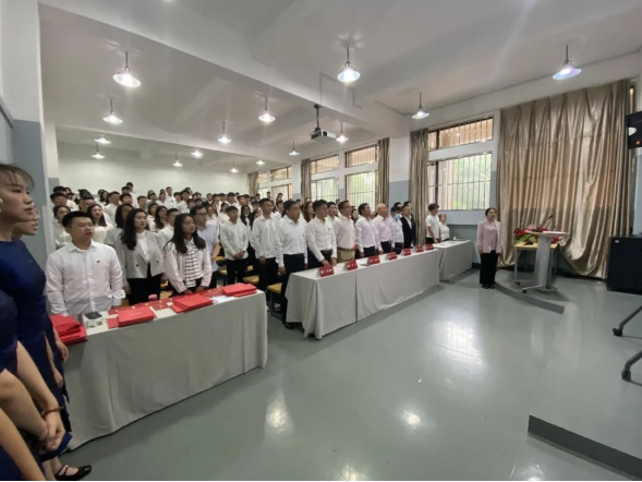 王进副书记宣读了2021年45名新发展党员的名单,余光荣、王进、杨凌辉、胡云斌、周映河、张萌、张栩榛、李顺年等同志分批为新发展党员佩戴党徽,赠送《党章》。