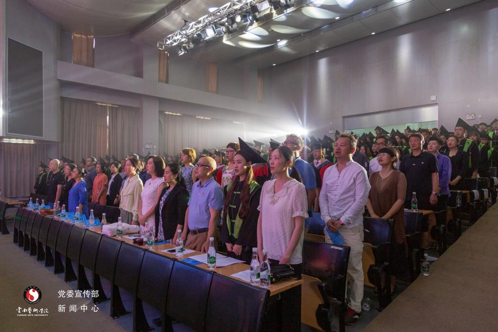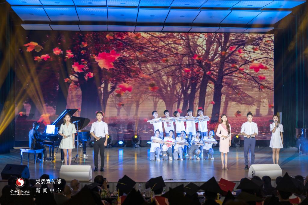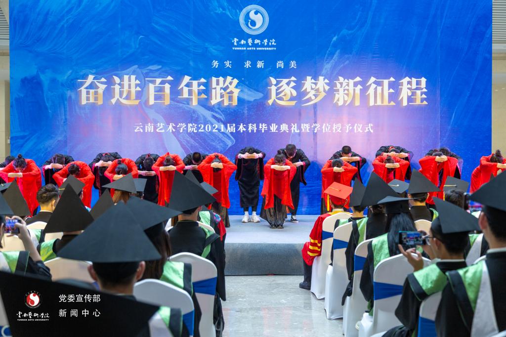 文艺演出展示出云艺学子对专业的坚韧态度,未来云艺人也将继续在热爱的舞台上发光发亮。随后,所有老师及毕业生移步图书馆,进行“谢师礼”、“毕业生作品捐赠仪式”、“拨穗仪式”。