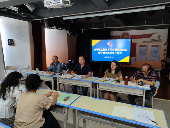 为全面贯彻习近平总书记关于教育的重要论述,落实全国、全省教育大会精神及学校关于师德师风建设和师德专题教育的工作部署和要求,切实抓好高职学院师德师风建设和师德专题教育工作。7月13日,高职学院在综合楼506会议室组织召开师德师风建设暨师德专题教育专题工作会。会议由高职学院党总支书记朱超主持,高职学院全体教职工参加了会议。