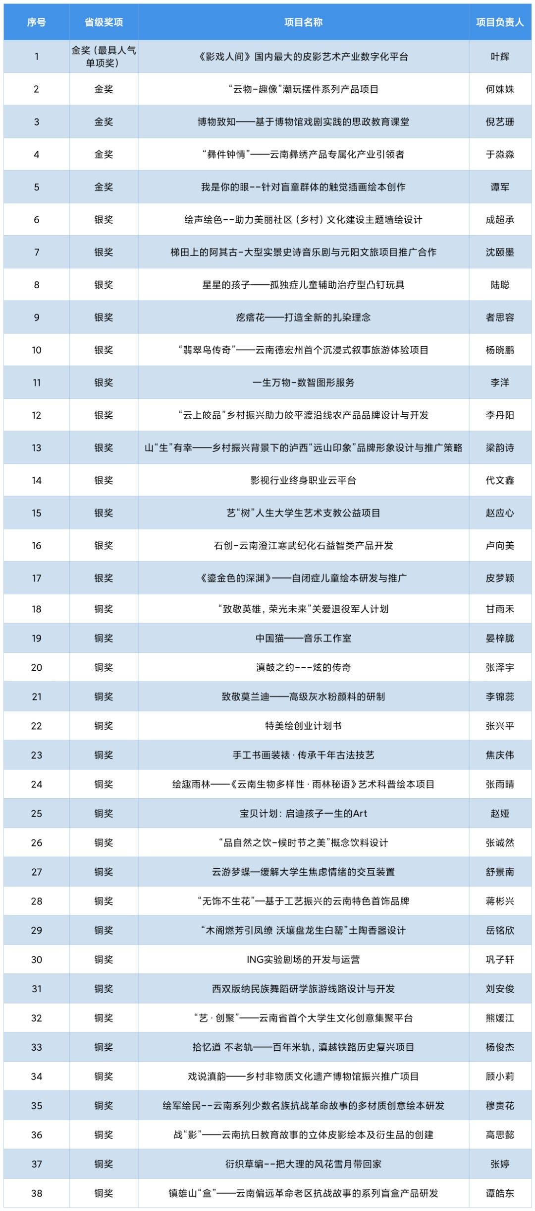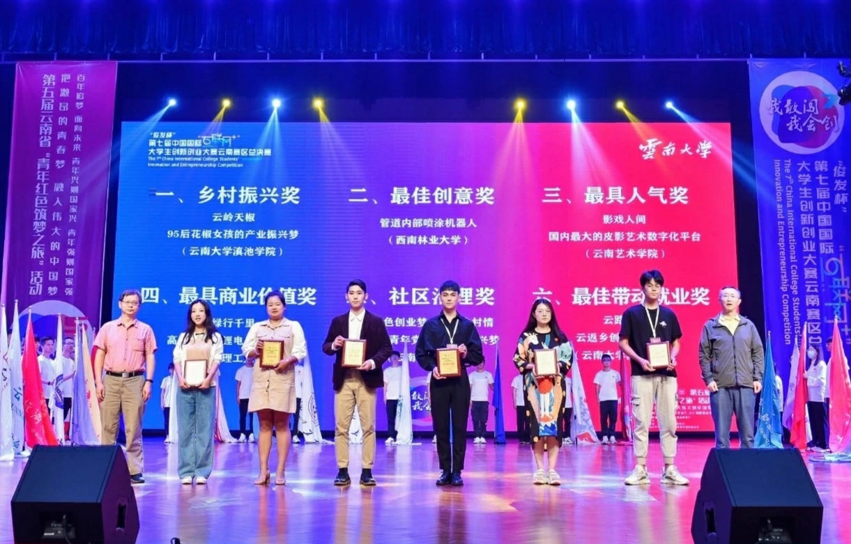 为全面落实习近平总书记给中国“互联网+”大学生创新创业大赛“青年红色筑梦之旅”大学生重要回信精神,加快培养创新创业人才,2021年7月24日-26日,第七届中国国际“互联网+”大学生创新创业大赛云南赛区总决赛在云南大学呈贡校区举行。我校学子充分发挥“我敢闯、我会创”的大赛精神,经过激烈角逐,取得了“5金12银”的好成绩,获得金奖数并列全省高校第4。其中,金奖项目《影戏人间——国内最大的皮影艺术数字化平台》同时获得最具人气单项奖。我校获得优秀组织奖。