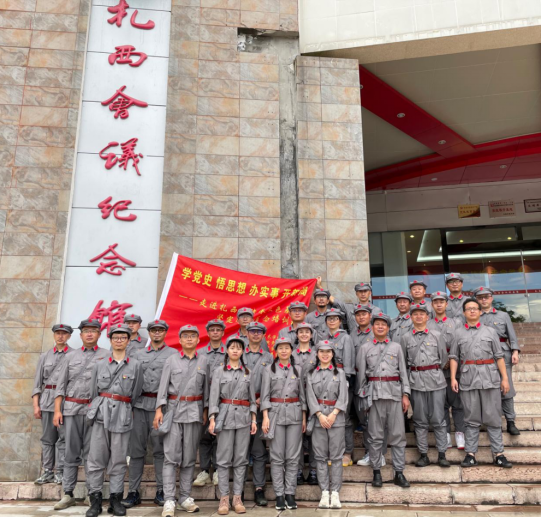为深入学习领会习近平总书记在党史学习教育动员大会上的重要讲话和在庆祝中国共产党成立100周年大会重要讲话精神,全面贯彻落实学院党委关于开展党史学习教育相关部署要求,引领全体党员学史明理、学史增信、学史崇德、学史力行,2021年7月25日至27日,设计学院党政班子成员、科室系部负责人、党员教师等26人来到扎西,开展“赓续精神血脉·传承红色基因”党史学习教育现场学习体验活动,接受革命传统教育和精神洗礼。一同参与培训的还有艺术管理学院党总支6名教工党员、纪检处直属党支部5名教工党员、图书馆直属党支部11名教工党员。培训采取专题教学、现场教学、激情教学和体验教学等灵活多样的方式进行。