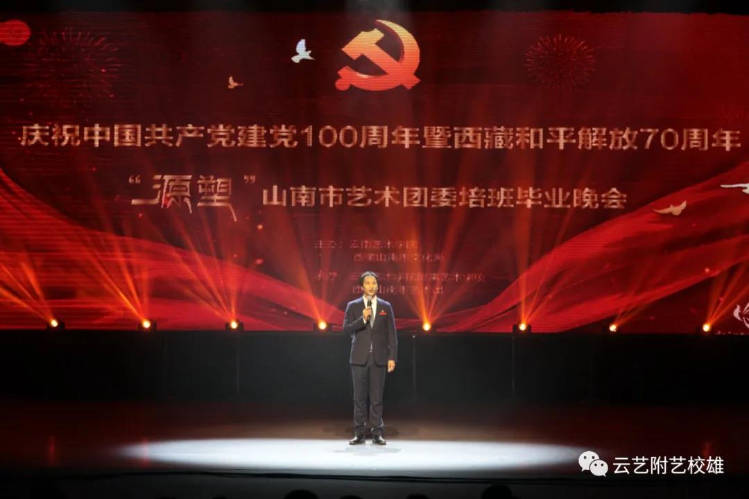 为弘扬党的优良传统,庆祝中国共产党成立100周年、西藏和平解放70周年,7月29日20:00附艺校农布七林校长、王晓军副校长携山南班任课教师团队一行,在西藏自治区山南市雅砻剧院圆满完成了附艺校庆祝建党100周年系列活动之云艺附艺校“校团合作项目”西藏山南艺术团委培班《源塑》毕业晚会的汇报演出任务。西藏自治区文化厅、西藏自治区群艺馆、西藏舞蹈家协会、拉萨市文化局、西藏大学艺术学院等单位领导出席毕业晚会,山南市委汪华东副书记、市文化局司冈存书记以及市相关单位领导干部出席了本场演出,学生家长及社会各界纷纷到场观看,演出现场座无虚席。