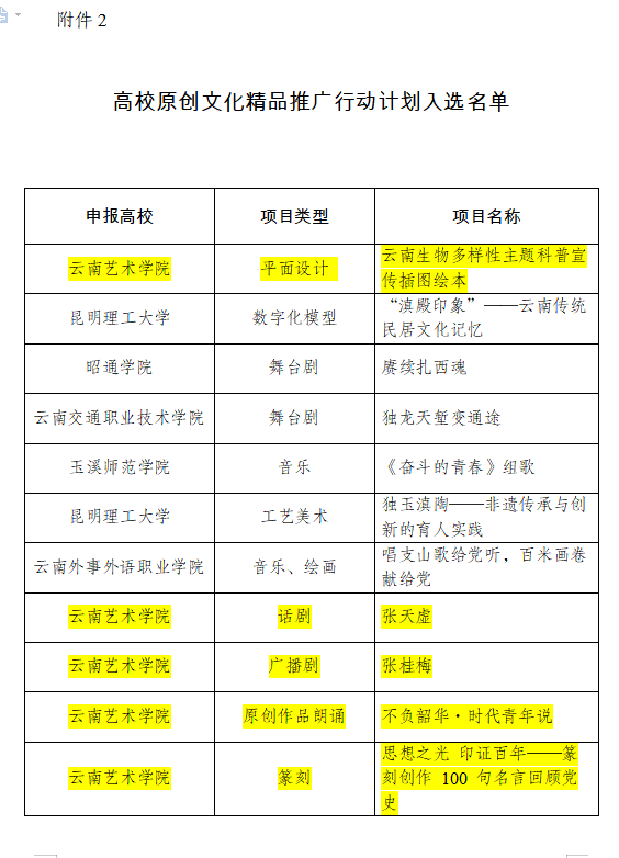 同时,我校《具有中国特色的边疆民族艺术教育课程思政育人体系的构建》、平面设计《云南生物多样性主题科普宣传插图绘本》《印证云岭 先锋永恒》3个项目分别被省委教育工委推荐申报教育部相应项目。