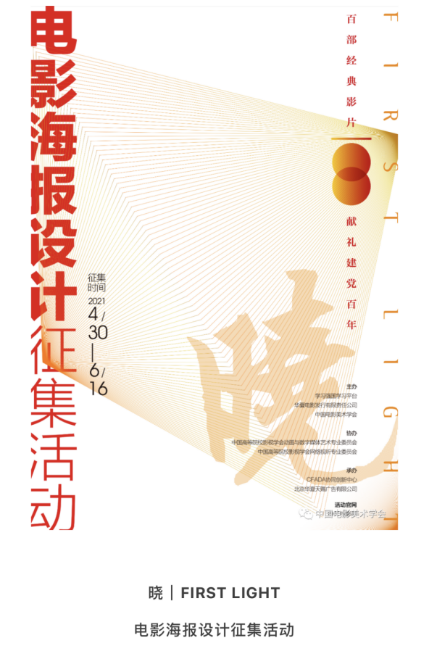 2021年4月,由“学习强国”学习平台、华夏电影发行有限责任公司、中国电影美术学会主办的“百部经典电影献礼建党百年——晓|FIRST LIGHT电影海报设计征集活动”启动,bw必威西汉姆联官方网站设计学院积极参与、组织学生开展创作工作。