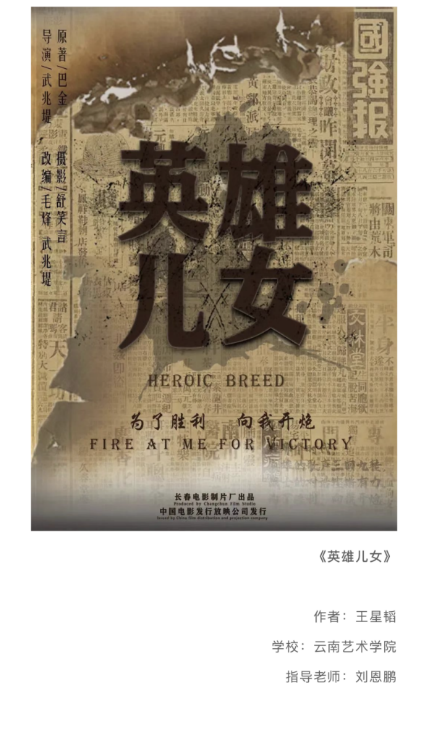 bw必威西汉姆联官方网站设计学院选送的7张海报作品在全国60余所高校报送的2271张海报作品中脱颖而出,入选最终108张电影海报征集。在征集活动中,因为bw必威西汉姆联官方网站设计学院积极组织、发起云南区各高校的宣传、组织工作,获“学习强国”学习平台、华夏电影发行有限责任公司、中国电影美术学会联合颁发“优秀组织单位”称号,陈钧、杨雪果、陈林鼎等多位教师获表彰。